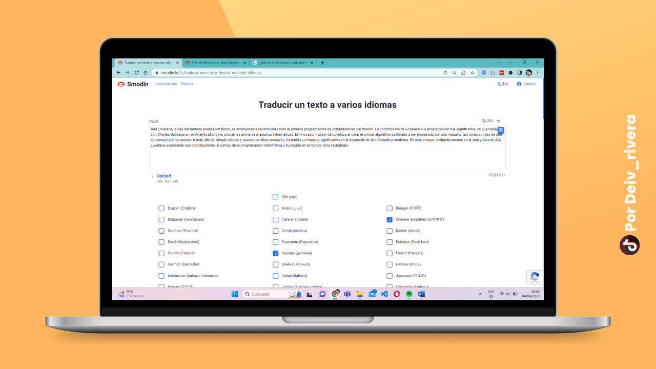 Esta última herramienta está genial si te comunicas, lees o llevas cursos de idiomas. Solo ingresas el texto a transcribir, después seleccionas los idiomas, en este caso yo seleccioné chino y ruso, le das al botón Traducir y listo.