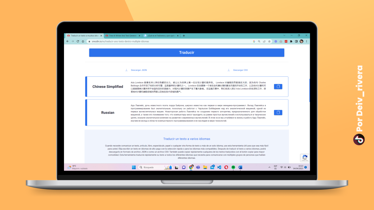 Ya eres escritor multilingüe, ya solo le das en el icono de copiar y lo puedes pegar donde lo requieras. Lo bonito de esto es que en todos los idiomas que selecciones te mostrará de forma automática, ya no vas a traducir idioma por idioma.