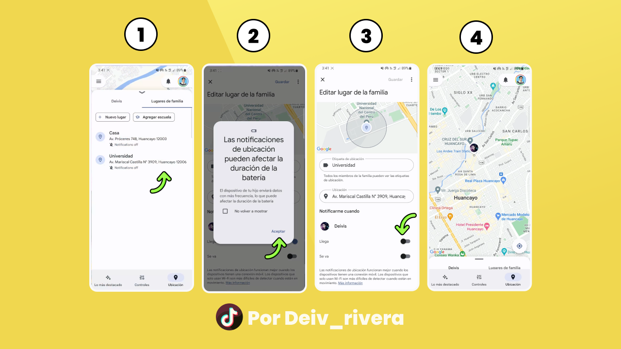 También puedes definir lugares donde pasa más tiempo, como tu casa o la universidad o el colegio. Así cada que llegue o se vaya de esos lugares te llegará una notificación a tu teléfono, así nunca más podrá escaparse de casa o faltar a la universidad sin que tú lo sepas.
