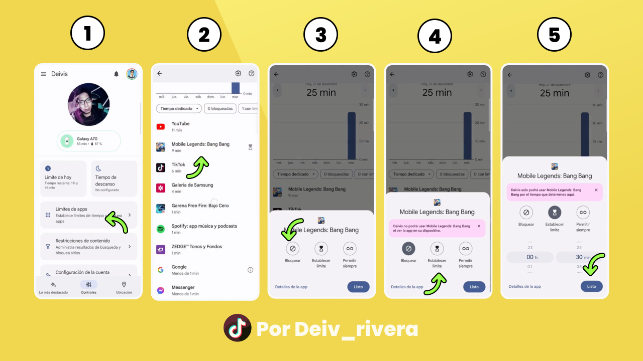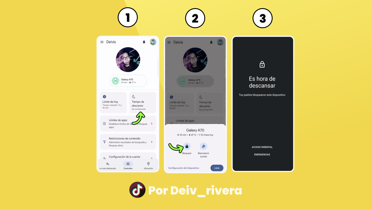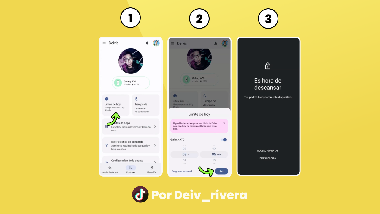 Con Family Link para Controles parentales podrás supervisar si tus hijos pasan demasiado tiempo en el teléfono jugando o viendo tiktoks, además podrás controlarlos, definiendo una hora límite de uso.