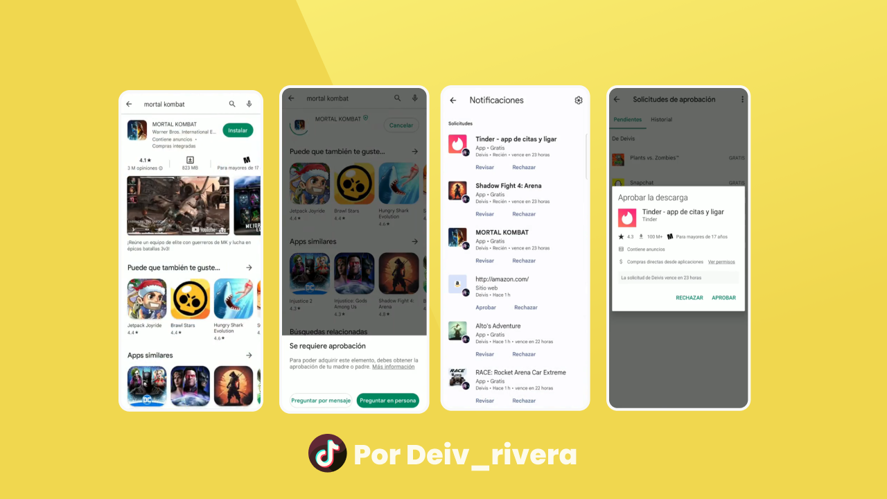 Es muy importante supervisar las aplicaciones que instalan tus hijos, por ejemplo si quiere instalar juegos violentos o aplicaciones como Tinder no podrá hacerlo sin que tú lo autorices desde tu teléfono.