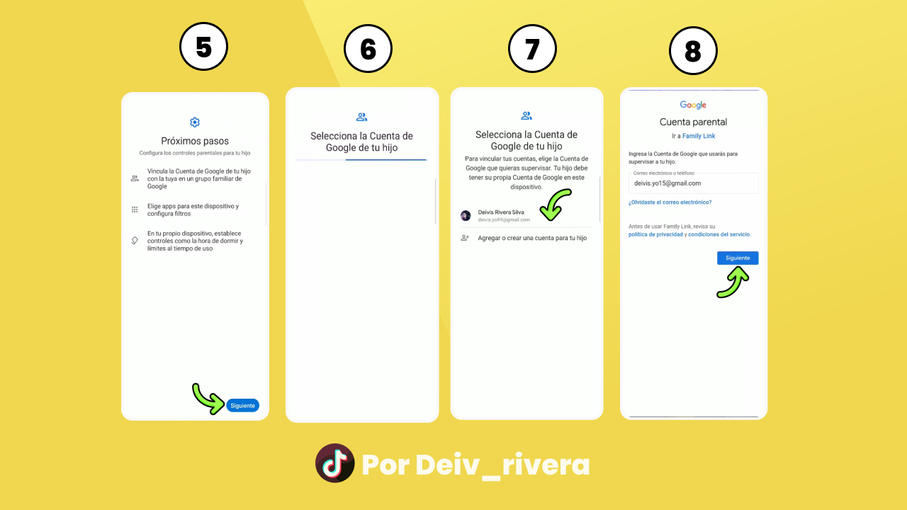 8. Luego aparecerá un campo donde te pide tu “correo de padre”, porque serás tú quien controle el teléfono de tu hijo, luego le das click en “siguiente”.