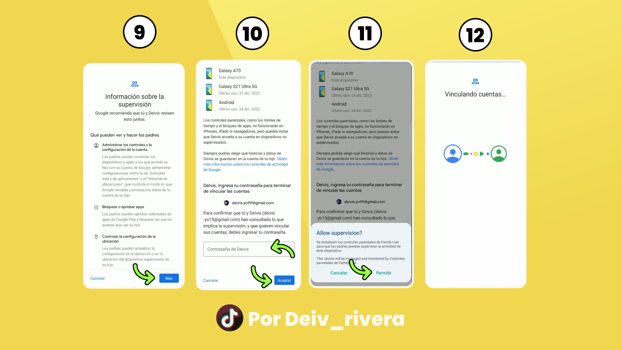 10. Como pasos finales ingresas la contraseña del correo de tu hijo, le das a aceptar.