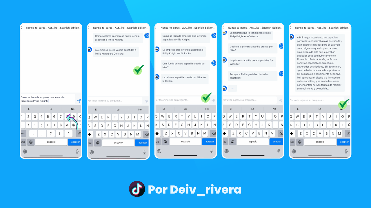 Para realizar las preguntas es muy sencillo cuando termina de analizar te mostrará un chat donde tú escribes la pregunta y te responderá de forma automática, para probar esta función yo subí el libro Nunca te pares, la autobiografía del fundador de Nike, que tiene 372 páginas, como pudiste observar en los pasos para analizar el documento, subo este libro porque recuerdo la mayoría de las cosas y veremos si la app responde correctamente.