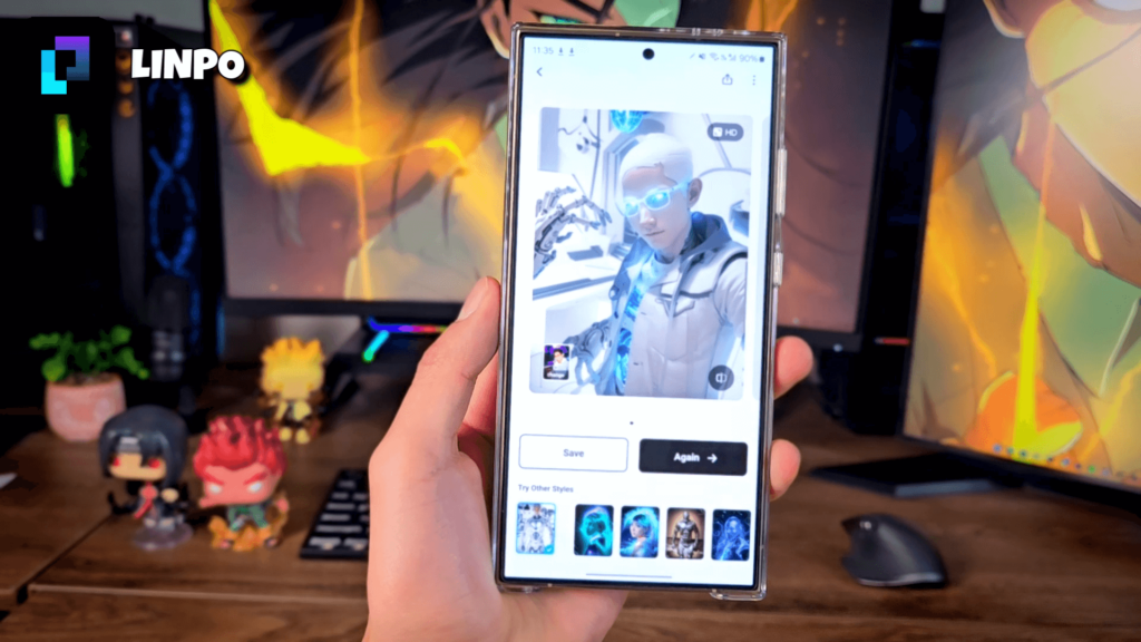 La tercera y una aplicación con inteligencia artificial es Linpo. Una app bastante divertida que hace trasforma una foto normal a una sensacional como este que estás viendo.
