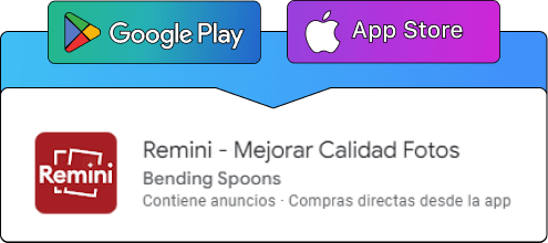 Ahora pasamos a la segunda app ¡Remini! Que no es una app de edición de fotos como tal, pero la vas a amar porque esta app mejora la calidad de las fotos y es super fácil de usar, solo debes seleccionar alguna foto que quieras mejorar y ver un anuncio de 30 segundos, que por los resultados que te da verás que vale muchísimo la pena.