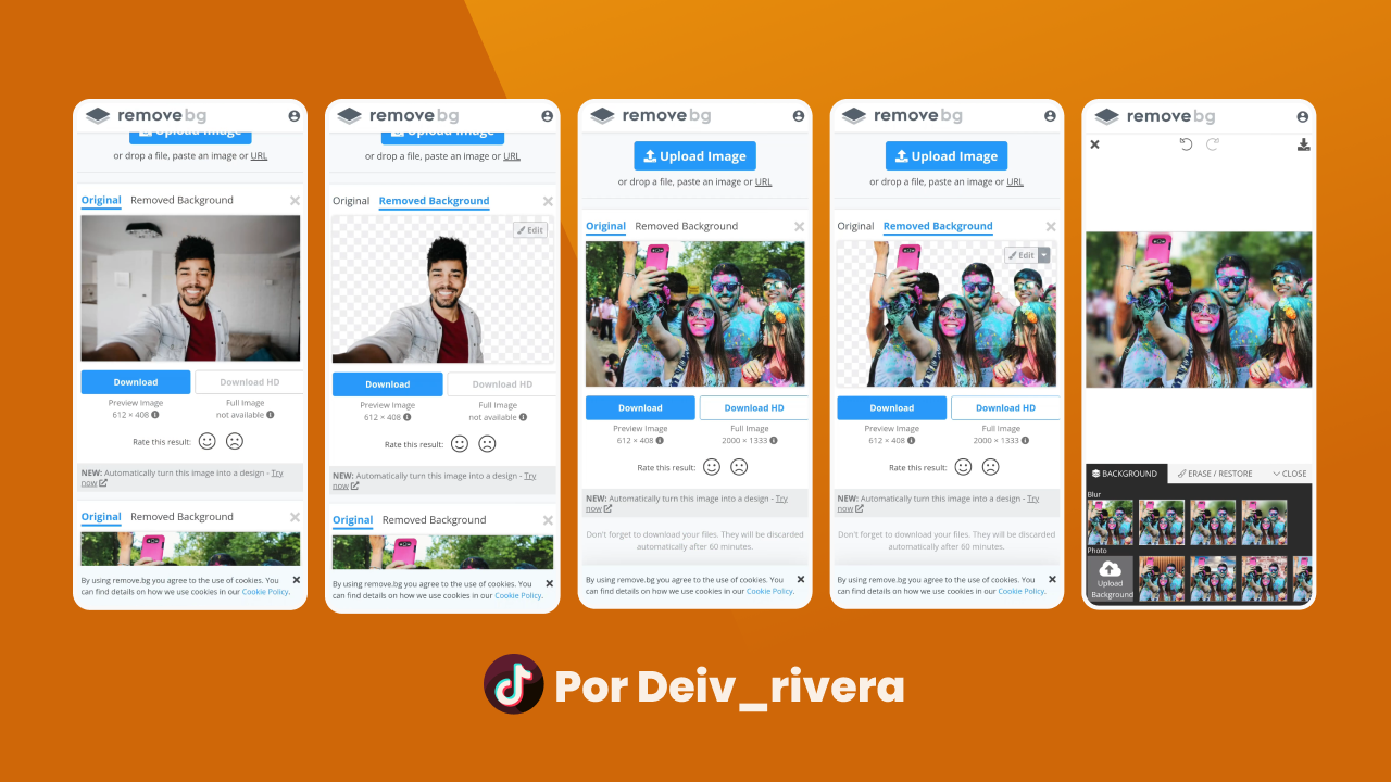 Solo debes subir tu foto a las apps para Editar Fotos, darle a remover fondo, esperar unos segundos y listo, puedes agregarle diferentes efectos como un fondo difuminado, un color o descargarlo en fondo transparente.
