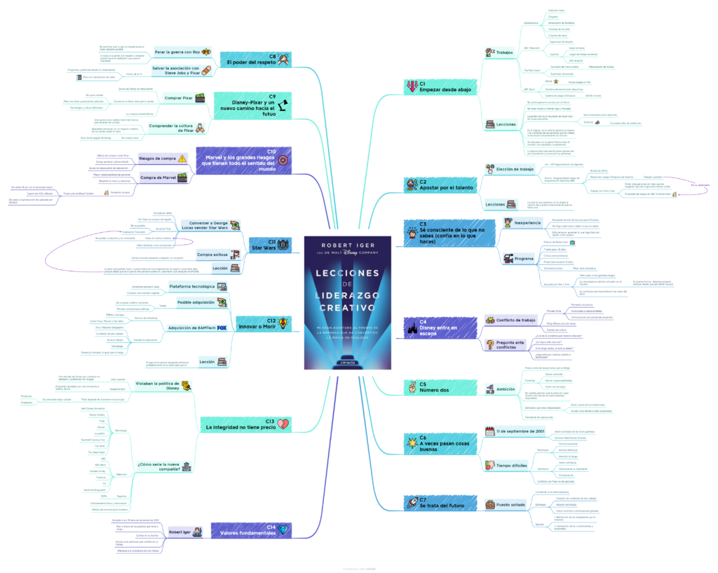 Las dos lecciones que más te van a gustar son la de Valentía y Curiosidad, porque nos cuenta como Disney llego a un punto donde tenía que dejar de ser una empresa tradicional y convertirse en una innovadora o iba a morir.
